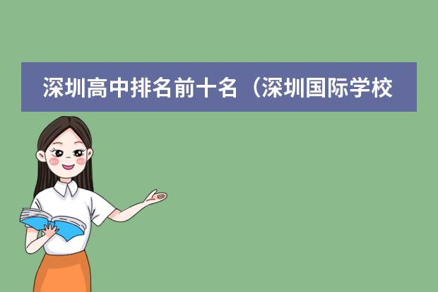 深圳市十大高中排名是深圳中学、深圳外国语学校、深圳实验学校,深圳高级中学、宝安中学、红岭中学、南山外国语学校、翠园中学、育才中学和深圳大学师范学院附属中学。