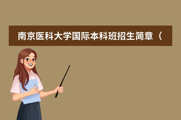 为了获取最准确和最新的国际本科班招生简章,建议直接访问南京医科大学本科生招生网( ),或关注南京医科大学官方发布的最新招生信息。同时,也可以联系学校的招生办公室进行咨询,以获取更详细的招生信息和指导。